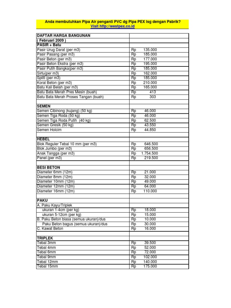 Harga Bahan Bangunan Terbaru Dan Terlengkap Konstruksi Dlidir
