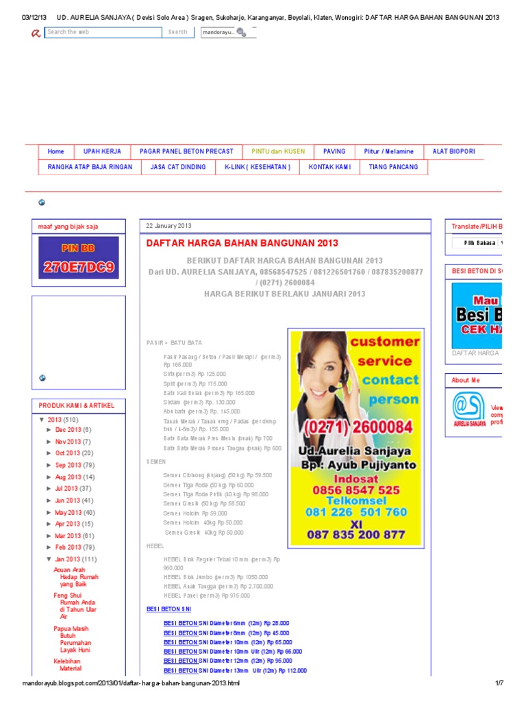Daftar Harga Material Ud Aurelia Sanjaya